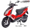EEC SCOOTER,2 STROKE SCOOTER,MOPED SCOOTER,MOTORCYCLE Product size:1,870 x 700 x 1,165mmSeat height:800mmEngine:49.8cc,2 stroke, forced air CoolBore x Stroke (mm):40x39.8mmCompression ratio:7.2:1Max power:2.2kw/8000rpmMaxTorque(N.m./r/min)3.2N.m/5500rpmStarting:electric/kickIgnitionCDITransmissionAutomaticFinal DriveBeltBattery:12V7AHTank:6.0LWheel size:120*70-12/130*70-12Wheel base:1270mmFront suspention:Telescopic-ForkRear suspention:Hydraulic MonoshorkFront brake:Disc brakeRear Brake:Drum brakeMax speed:60km/h ,45km/h(EEC)Dry weight:84kgsColour :red,black,siliver,blue,orange,green,whiteContainer:26pcs/20GP,disassemble the front wheel only 52pcs/40FT,disassemble the front wheel only 78pcs/40HQ disassemble the front wheel and front plastic etc